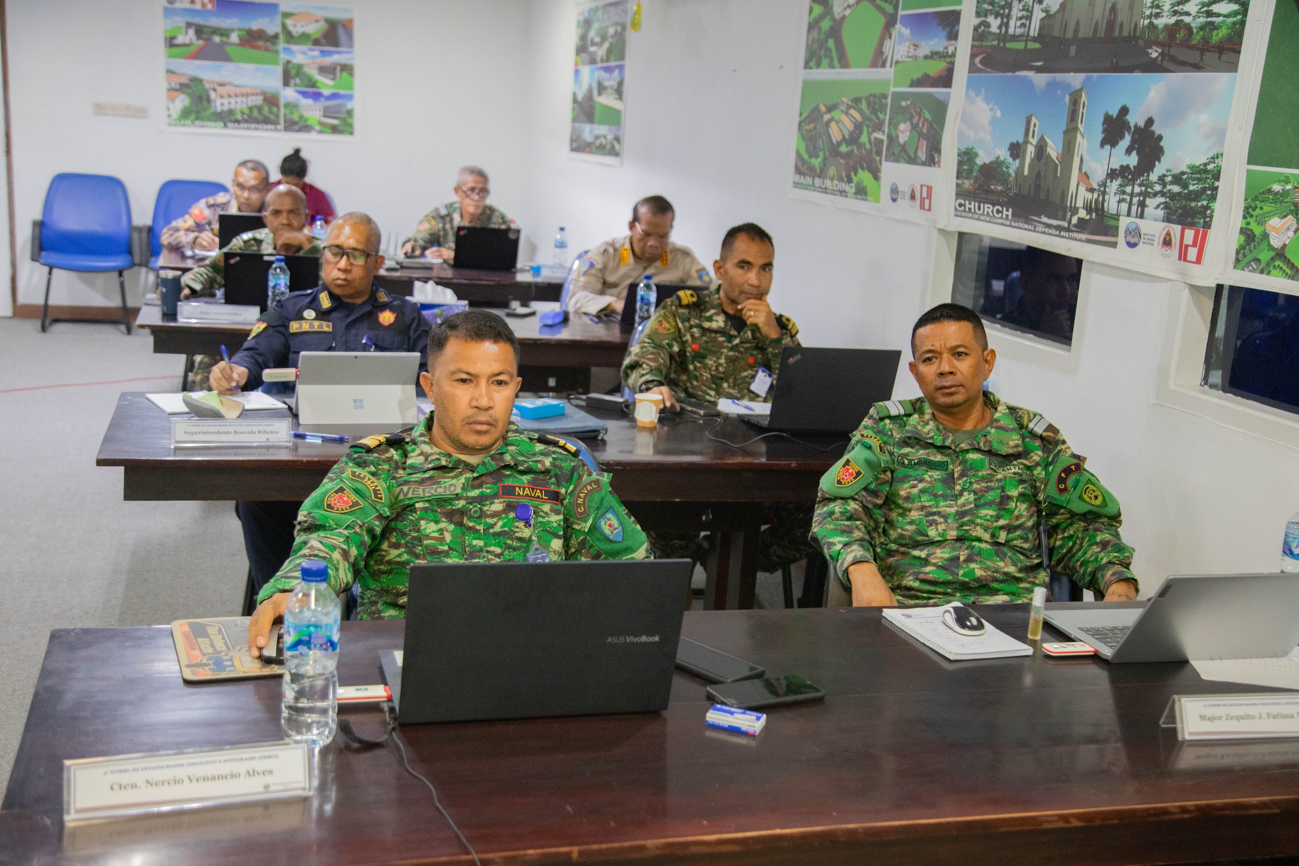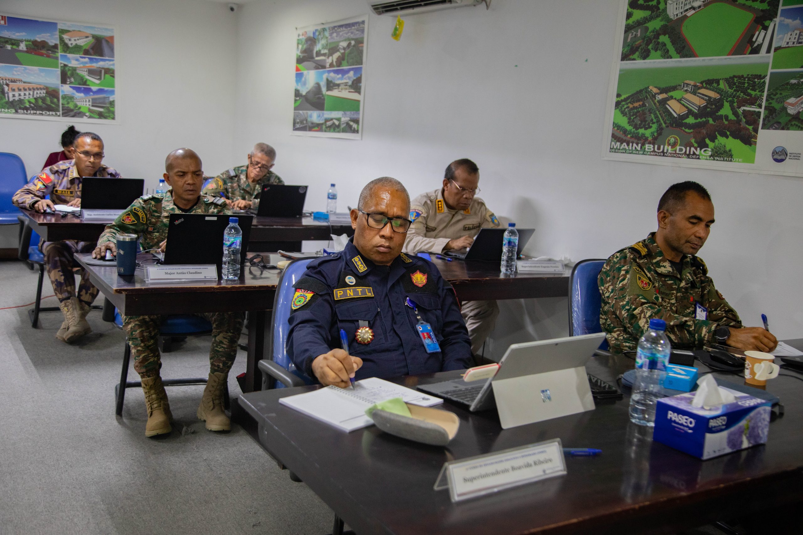 Dìli- 19 Setembru 2025, alunu Kursu Estadu Maior Konjuntu Intergradu ba daha’at iha sesta feira, ne’e hala’o revisaun ba Matèria Doutrina Operasoins Terrestre (Dot), ne’ebè hanorin husi dosente atual Diretór Ensino Formasaun IDN, Kapitaun Fragata Graduadu Nicolau Sousa Guterres durante semana rua iha auditoriu IDN palàsiu Governu Dìli.