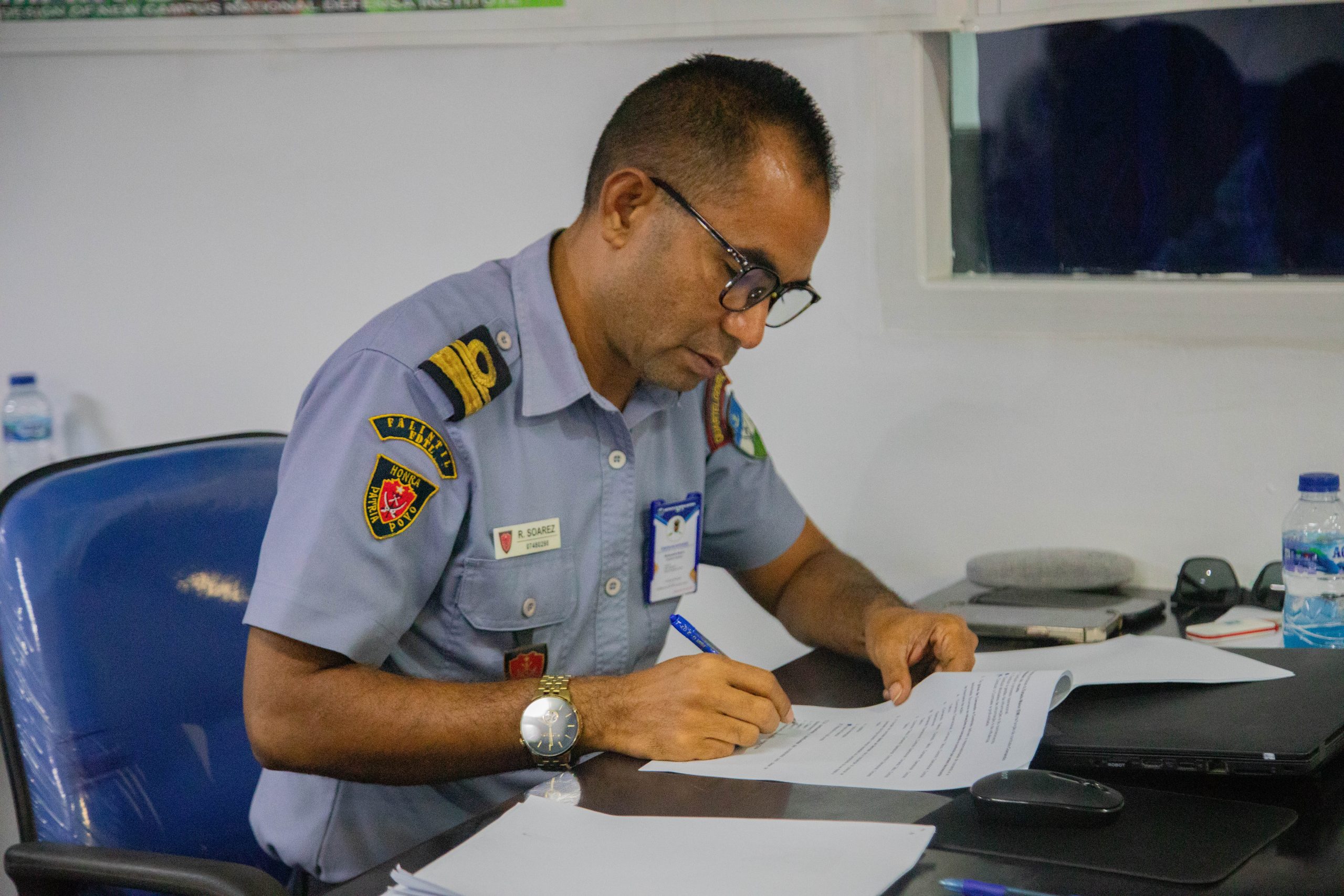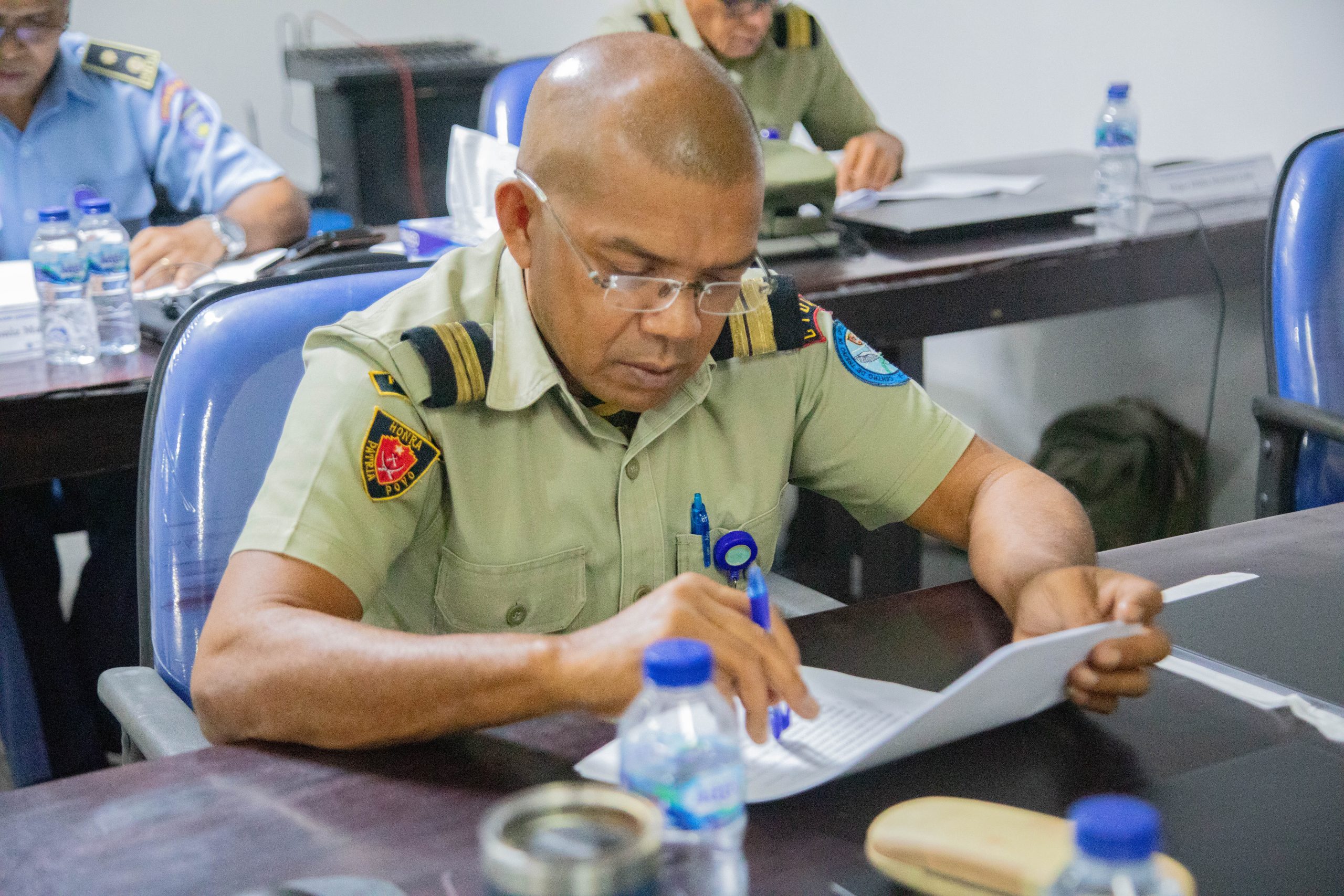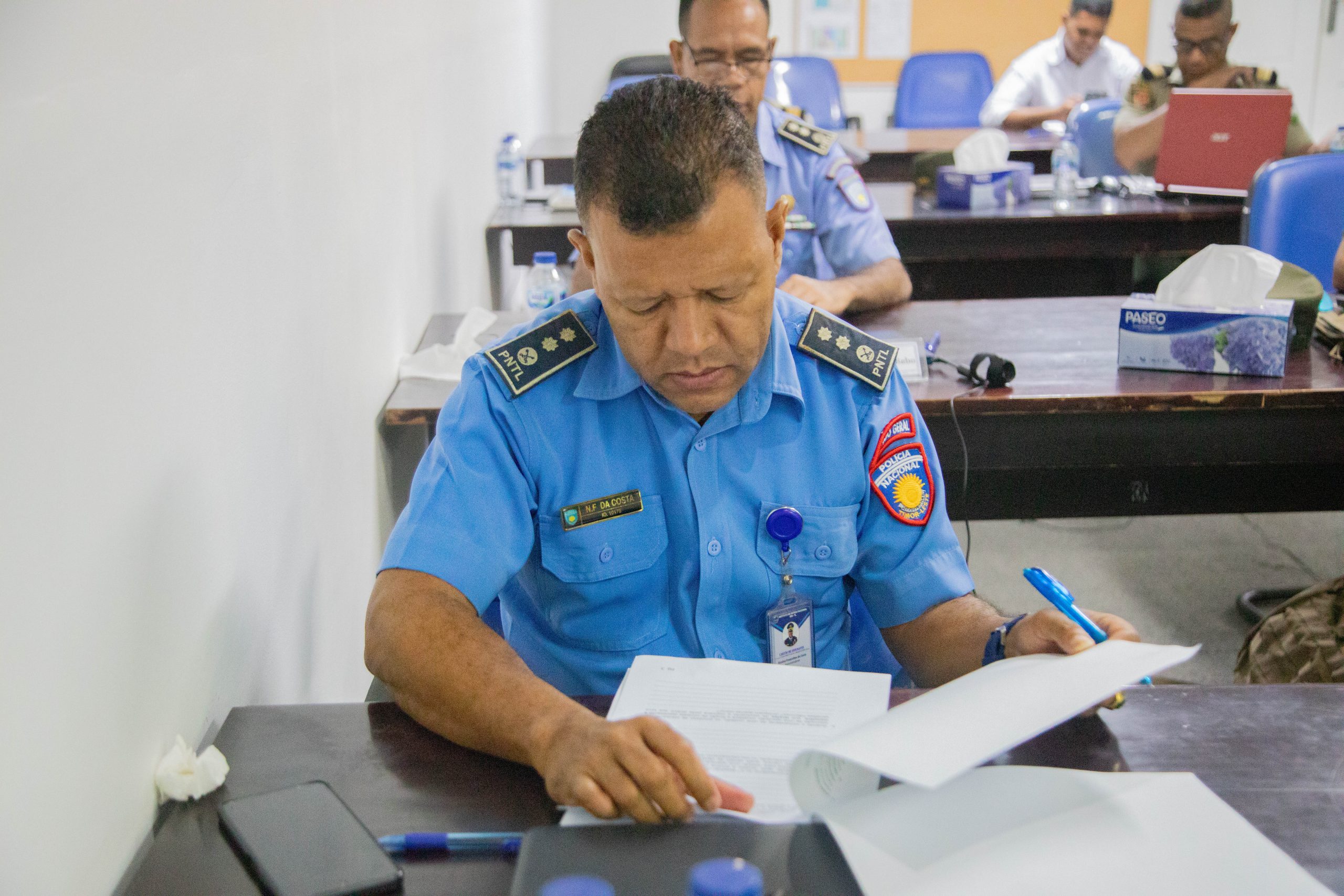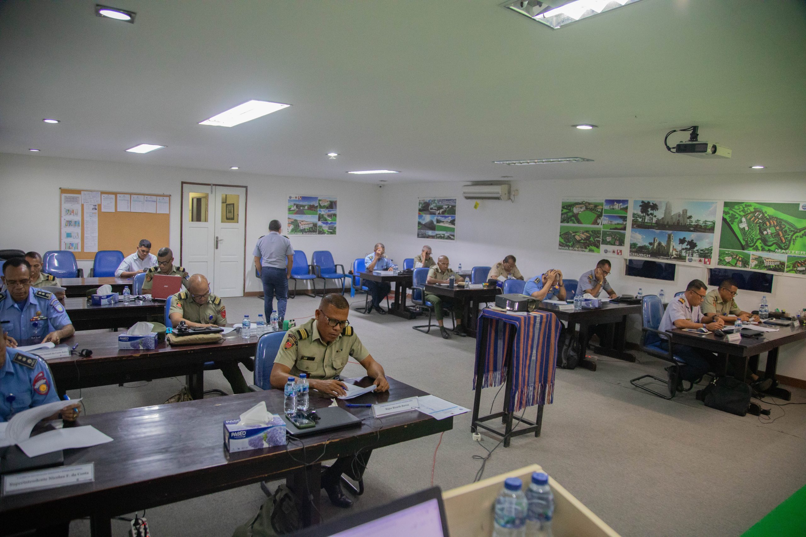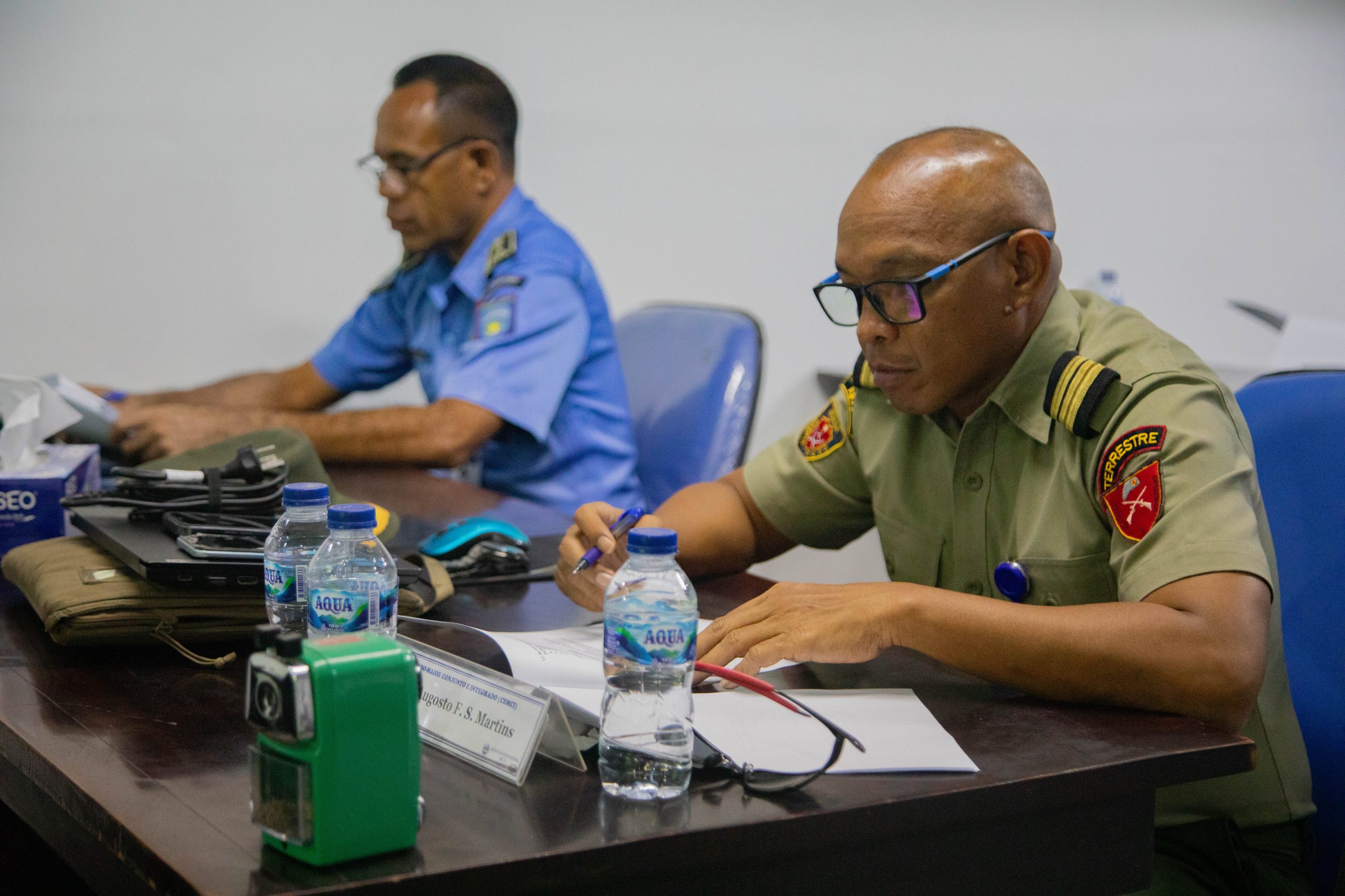 Dìli- 22 Setembru 2025, Alunu kursu Estadu Maior Konjuntu Integradu na’in 14 kompostu husi ofisial ho postu Major no Kapitaun Tenente husi F-FDTL nain 10 no Superintente asistente no superintende Polisia nain 4, husi PNTL, halao teste avaliasaun koñesimentu klasse ba Matèria doutrina operasaun terrestres ne’ebè hanorin husi Dosente no aktual diretòr ensinu no formsaun Instituto Defesa Nasional (IDN), Kapitaun Fragata Graduadu Nicolau Sousa Guterres iha auditoriu IDN palàsiu Governu Dìli durante semana rua.