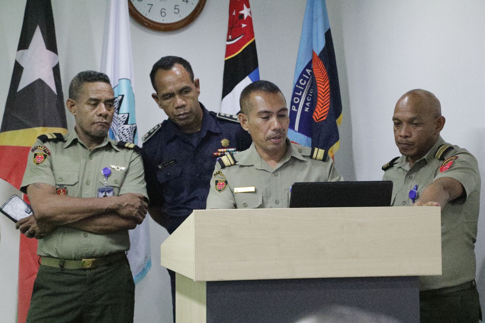 Liu husi prosesu diskusaun akademai, alunu ofisial husi PNTL ho F-FDTL nain 14, fahe ba grupu, 3 , hodi hodi hala’o aprezentasaun, bazeia ba Lisaun teorika nian, ne’ebé hanorin husi Majór Infantaria “Cmd” Moio Pereira, fó preparasaun ba alunu sira atu enfrenta simulasaun situasaun operasional iha nivel tátiku.