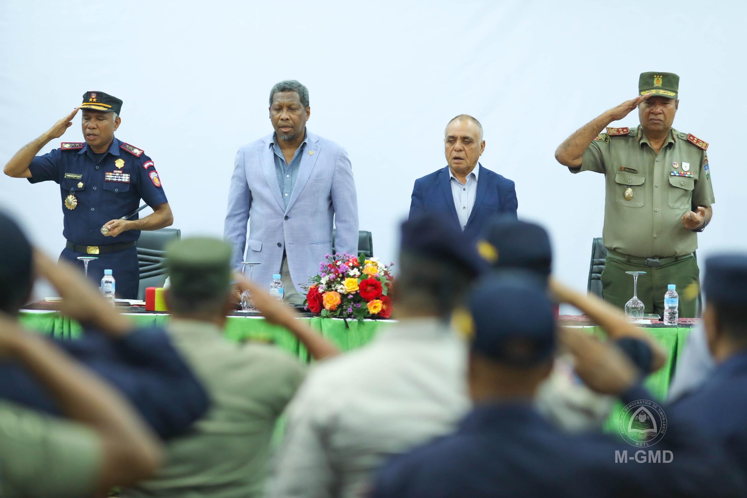 Díli, 3 Outubru 2025 –Diretór Interinu Institutu Defeza Nasionál (IDN), Dr. Nuno Corvelo Sarmento, akompaña husi Diretór Diresaun Investigasaun, Dezenvolvimentu no Inovasaun, Dr. Guilherme Soares, partisipa iha enkontru avaliasaun seguransa konjunta entre FALINTIL–Forsa Defeza Timor-Leste (F-FDTL) no Polísia Nasionál Timor-Leste (PNTL), ne’ebé realiza iha Kuartel Jenerál F-FDTL, Fatuhada, Díli.