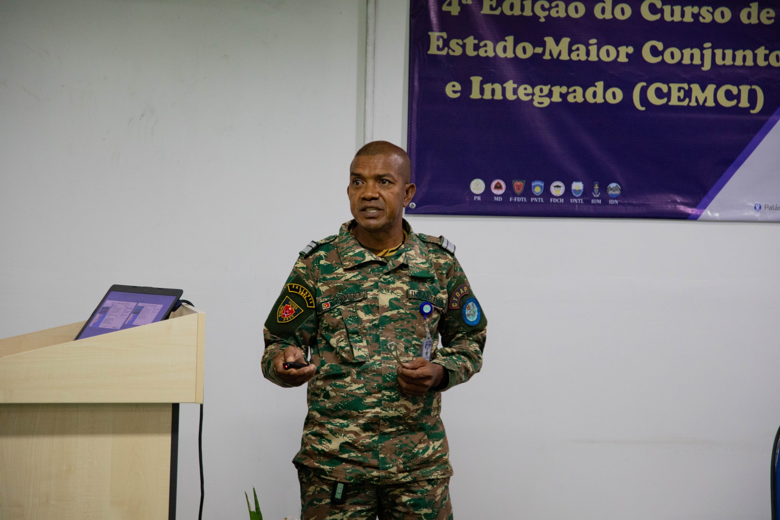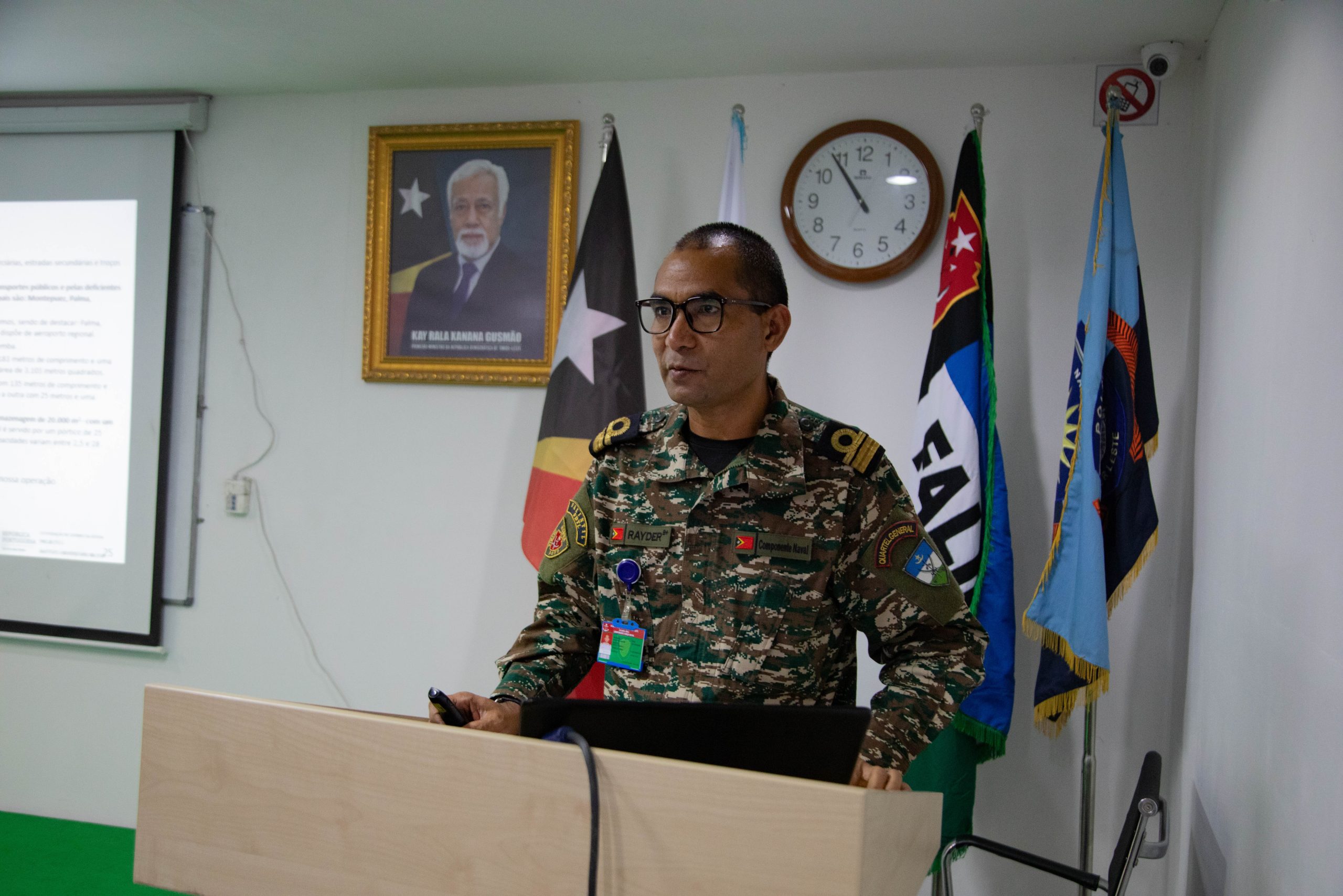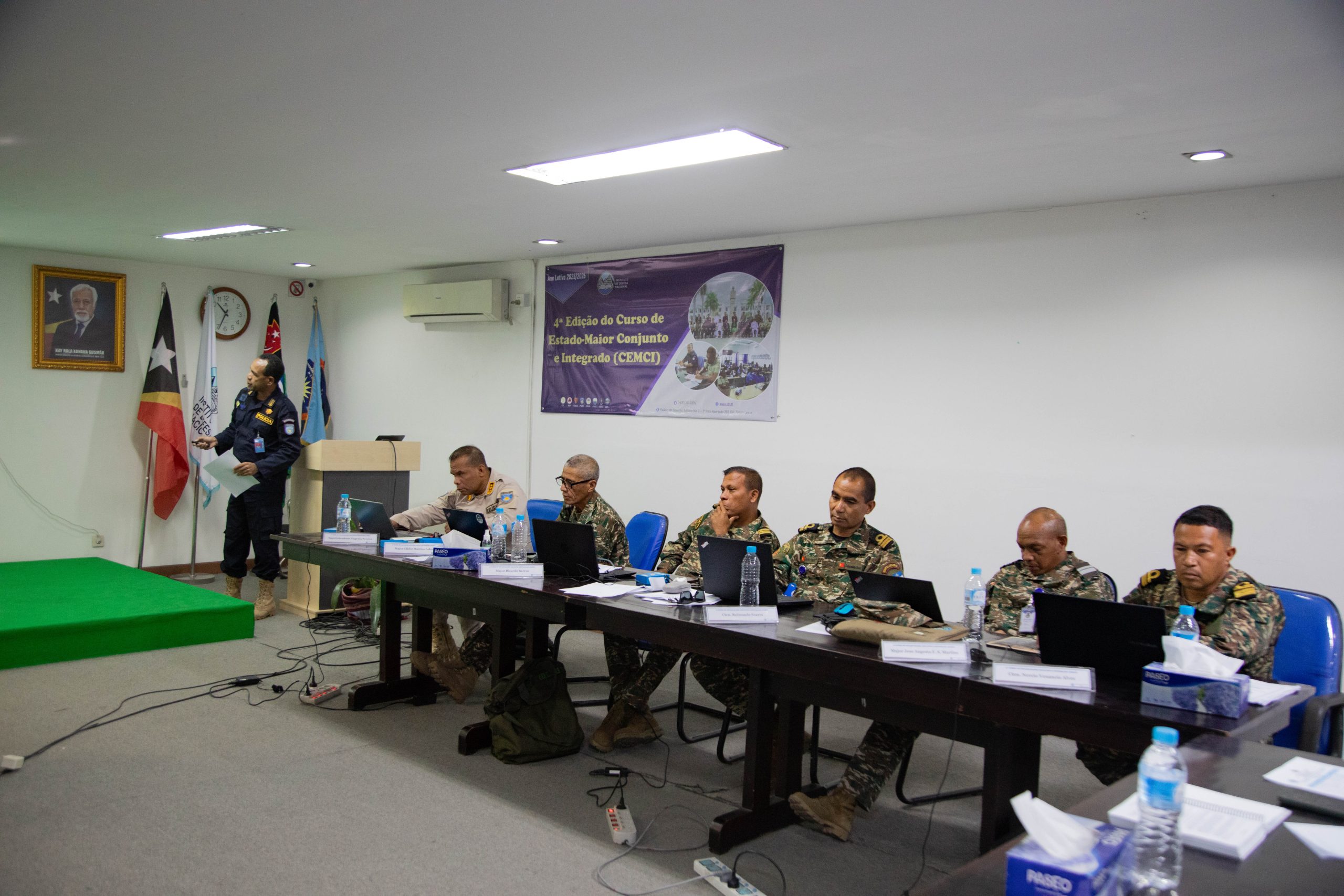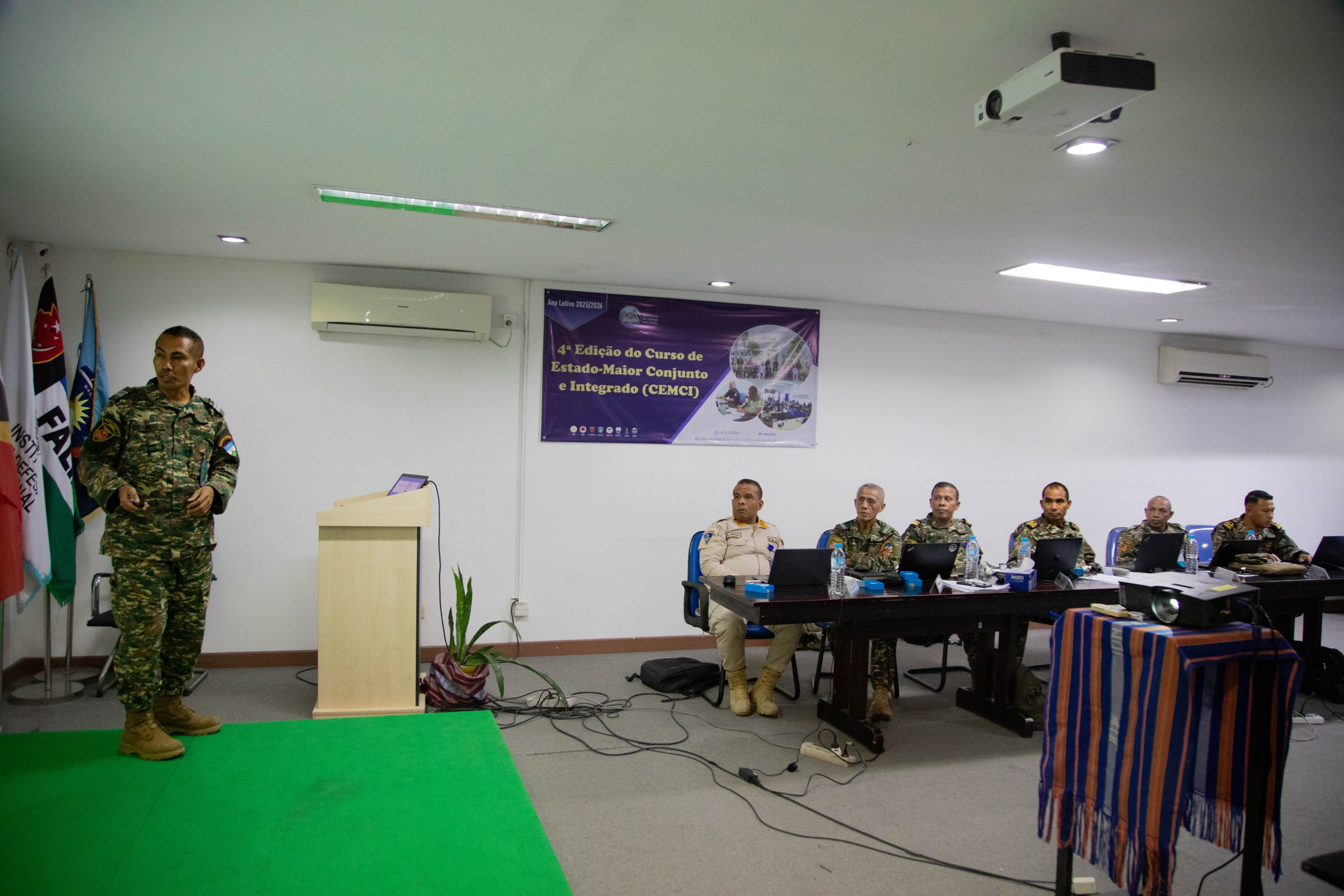 Díli, 20 Novembro 2025 –Alunu Kursu Estadu Maior Konjunta Integradu ba dala 4, kontinua pratika aprezentasaun individual iha kinta-feira, hodi prátika no explika traballu sira kona-ba elabora Planu Operasaun Ezersísu iha matéria Operasaun Konjunta no Kombinada. Atividade ne’e orienta husi Dosente Tenente Koronel Jorge Magalhães, depois de semana ida preparasaun teoriku.