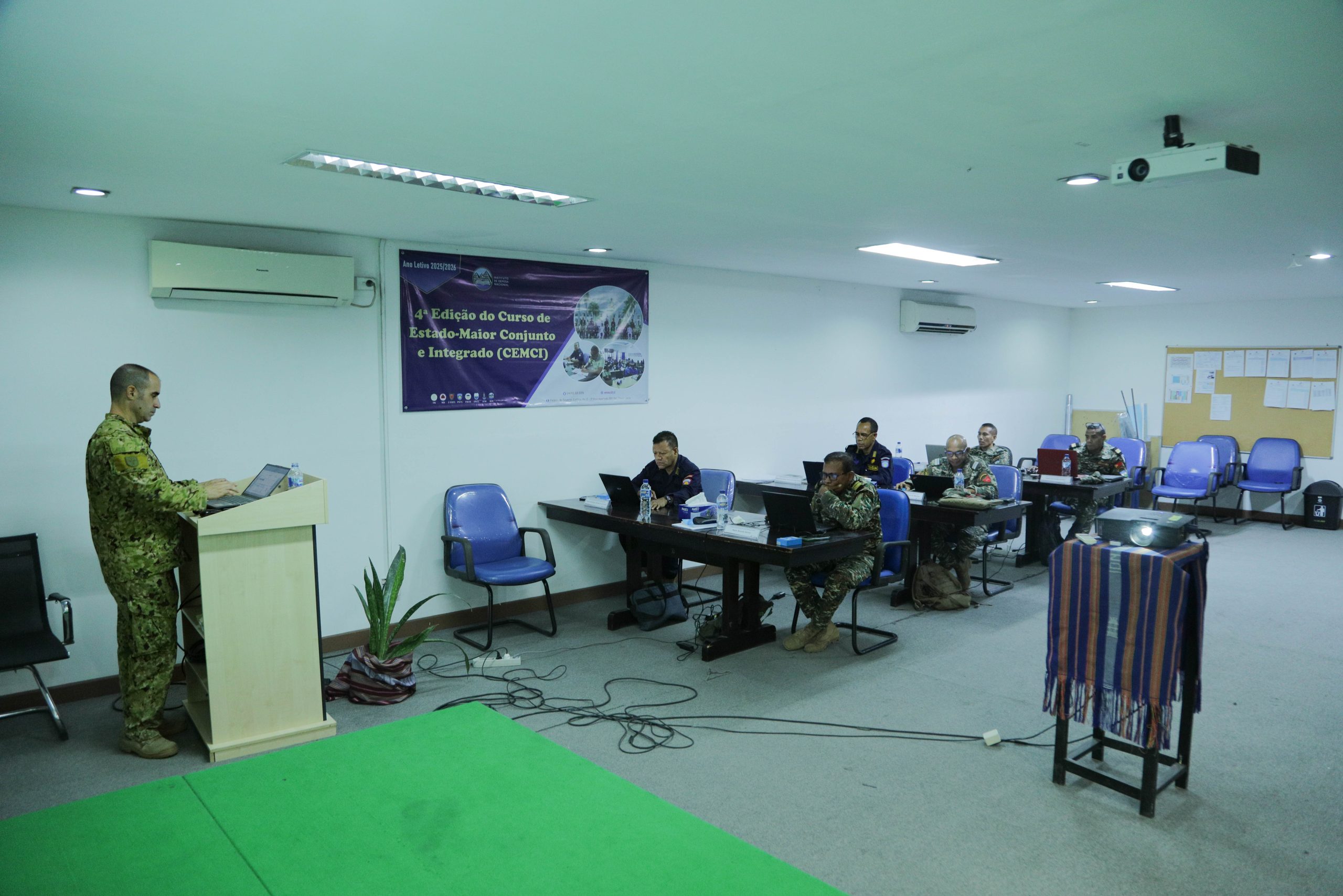 Kursu Estadu Maior Konjunta Integradu integra ofisiais husi F-FDTL, no PNTL. Estrutura ida ne’e importante tebes atu reforsa ko’ordenasaun, lideransa profisionál, no tomada de deiszaun iha nível operasionál, aumesmu tempo aumenta konsiensia nasionál no espírito kolaborasaun entre instituisaun defeza ho seguransa .