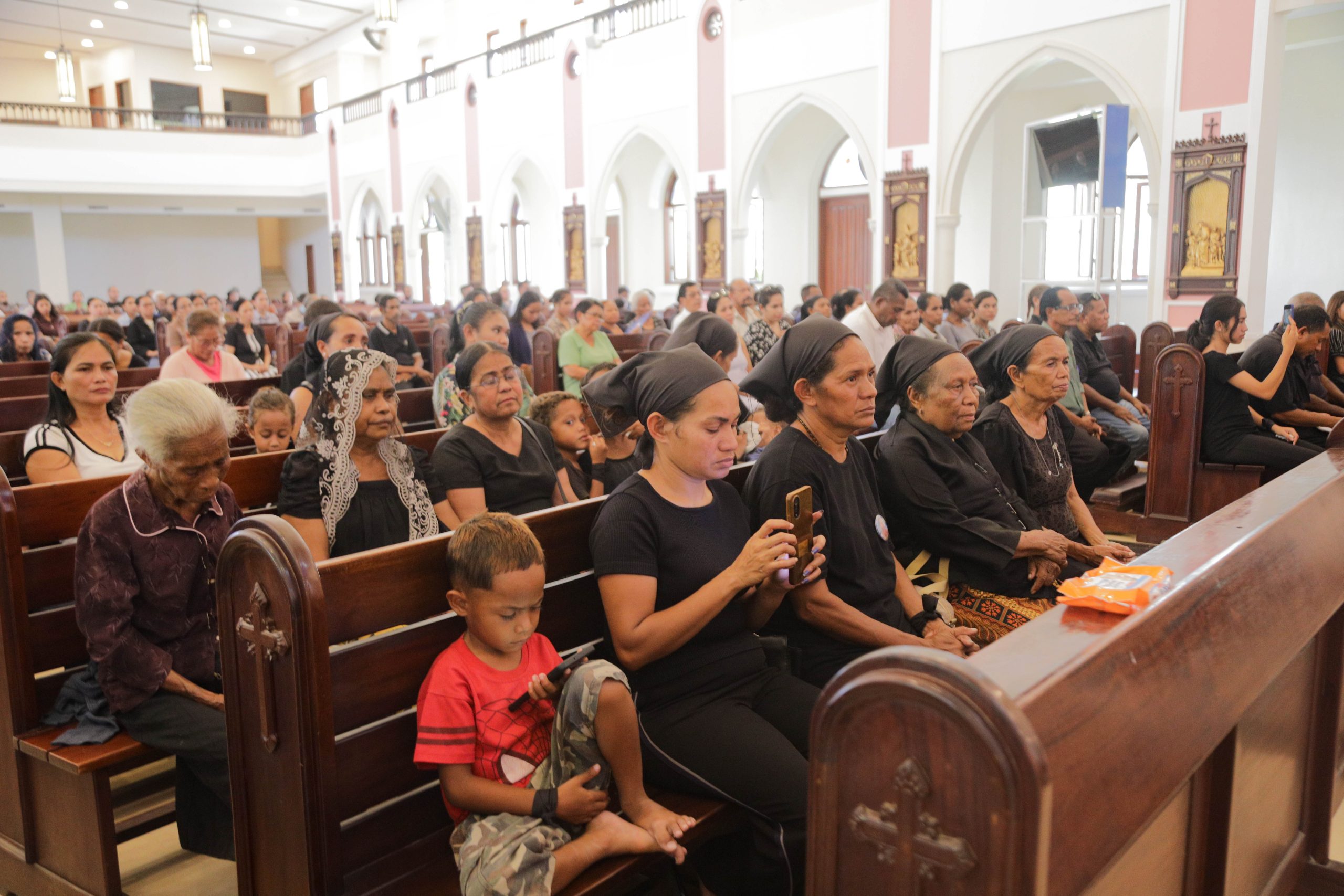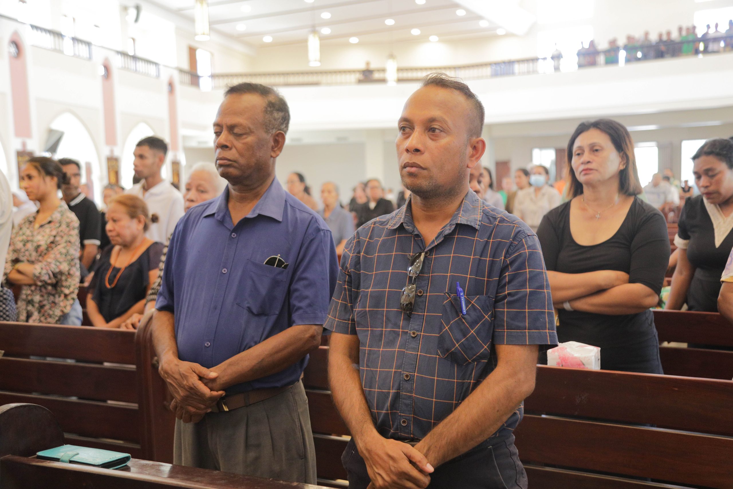 Hafoin hato’o omenajen ba mate isin matebian “Sebaha” Diretor Internu hamutuk ho funsionariu sira, kontinua akompana maktoban nia isin mate ba Igreja katedral Dili hodi halo selebrasaun Misa Rèquiem Ba Maktoban Sebahan nia isin mate ne’ebe preside husi Amo Demetrio Da Conceicao.