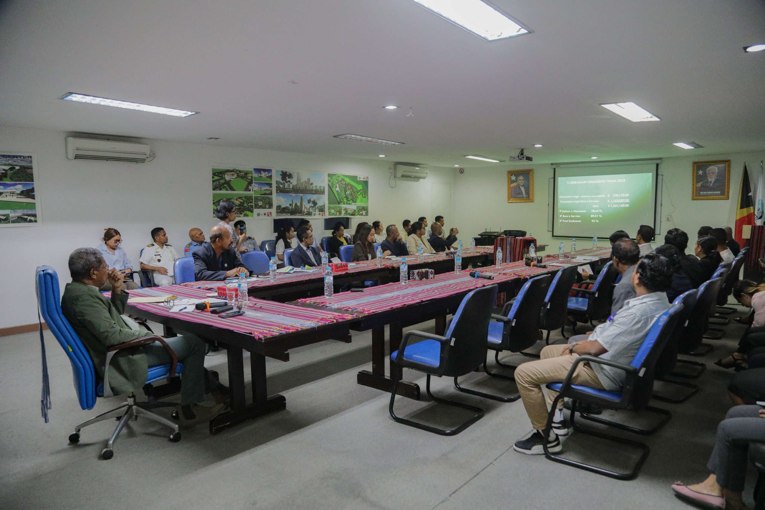 Díli, 16 Novembru 2025 – Sua Exelénsia Ministru Defeza, Kontra-Almirante Donaciano Costa Gomes “Pedro Klamar Fuik”, Ph.D., tersa feira ne’e, hala’o enkontru avaliasaun ho Diretor Interinu Dr. Nuno Corvelo Sarmento, Diretór Jeral Jestaun Rekursu, Diretór Nasional, no funsionáriu sira husi Institutu Defeza Nasional (IDN). Enkontru ne’e ho objetivu atu avalia progresu servisu ne’ebé IDN halo durante tinan 2025 no diskute dezafiu sira ne’ebé hasoru, tuir planu atividade ba tinan 2026.